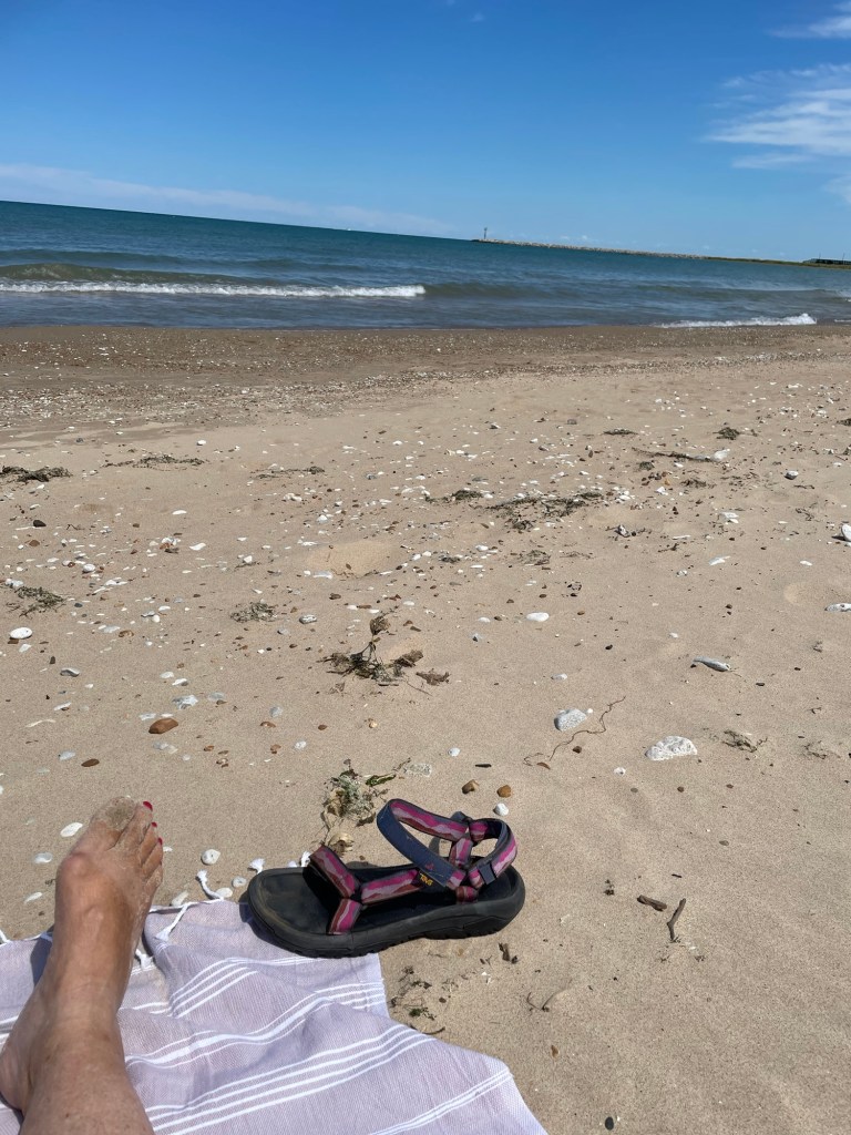 The high waves earlier in the week brought up a lot of rocky debris. I met a young s man out there who was wearing a blue park district shirt that told me he was a Park Ambassador!! That’s what it said right on his shirt!! He said he was tasked with making sure folks didn’t have dogs or bicycles on the sand. I told him that I was the trash lady.